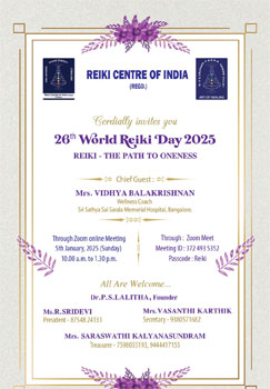 Reiki Centre of India (Registered) was constituted in the year 2001 for Promotion, Propagation and Advancement of Reiki. Reiki is an ancient spiritual healing system of medicine using cosmic energy. The membership of this centre is limited to the Reiki practitioners.